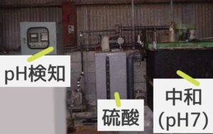 地下で一旦溜めてから硫酸を適量加えて中和させます。